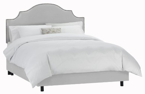 Skyline Furniture Velvet King Nail Button Notched Bed, Light Gray