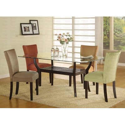 Morro Bay 5 Piece Dining Set?101491Series Features: -Contemporary style.-Tapered legs, clean lines.-Table base features a shelf.-Smooth beveled edge glass tops. Includes: -Includes 1 dining table. Construction: -Constructed of hardwoods. Color/Finish: -Deep Cappuccino wood finish. Dimensions: -Rectangular Dining Table: 30'' H x 72'' W x 42'' D.-Parson Chair: 38'' H x 19'' W x 23.5'' D.