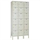 | ✚✚✚ Lyon 53X2-3 Six Tier Locker - 3 Sections (Unassembled) Lyon 53X2-3 Provide high density storage for individual belongings and supplies with this durable four tier locker unit. This model provides 18 separate locker units stacked vertically in 3 sections. Standard Features: -1-point latching system -Doors equipped with padlock hasps with door pulls -Ships knocked down -Available in 2 colors (Dove Gray and Putty) -Lifetime Warranty Optional Features: -Front and end bases make unit flush with the floor while providing a finished, uncluttered look -Sloping top for a clean, finished appearance -Number plates sold separately Notes: -For safety purposes, it is strongly recommended that all lockers be anchored to a wall or floor