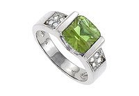 Peridot and Diamond Ring : 14K White Gold - 3.00 CT TGW Size 4.5