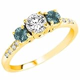 Looking for 18K Yellow Gold Round 3 Stone Diamond and Aquamarine Ring With Pave Set Shank (0.95 ctw) Size 9 1/2 Great Deals, Online shopping, 18K Yellow Gold Round 3 Stone Diamond and Aquamarine Ring With Pave Set Shank (0.95 ctw) Size 9 1/2 Read Product Review, Features, Specs, Description, Check Prices Update & More satisfactory for this item reviews! 18K Yellow Gold Round 3 Stone Diamond and Aquamarine Ring With Pave Set Shank (0.95 ctw) Size 9 1/2 This dazzling sparkling timeless ring is classic and can be used as an engagement ring, anniversary ring, bridal ring, promise ring, proposal ring, fashion ring, wedding ring, cocktail ring and also to represent eternal love between you and that special someone. This 18K Yellow Gold diamond ring is prong set with 2 round diamonds and 1 round Aquamarine gemstone. There also also 8 sparkly diamonds on the shank of this ring (5 on each side). The total carat weight of all the stones are approximately 0.95 carats. The diamonds are H-I color and SI-I2 clarity. The ring band measures approximately 1.80 mm wide and 1.0 mm thick.