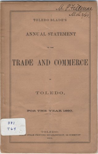 Millard Fillmore signed booklet: Toledo Blade's Annual Statement of the Trade and Commerce...for the Year 1860.?Booklet: Toledo Blade's Annual Statement of the Trade and Commerce...for the Year 1860 signed and dated at the top of the front cover by Millard Fillmore. Booklet: Toledo Blade's Annual Statement of the Trade and Commerce of Toledo for the Year 1860, Blade Stream Printing, Toledo: 1861, 28pp, paperbound, signed at the top of the front cover "M. P. Fillmore, March 2/67", binding stabbed and sewn. A tight copy in Fine condition. ... Edited for formatting purposes. More information is always available.