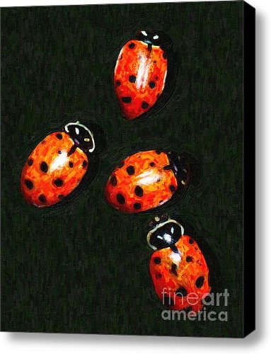 FeaturesMuseum Quality Canvas PrintGallery Wrapped on 1.5" Stretcher BarsArrives "Ready to Hang" with Hanging Wire, Mounting Hooks, and NailsAvailable in a Variety of SizesIncludes 30-Day Money Back Guarantee 4 Ladybugs Canvas Print / Canvas Art - Artist Wingsdomain Art and Photography?